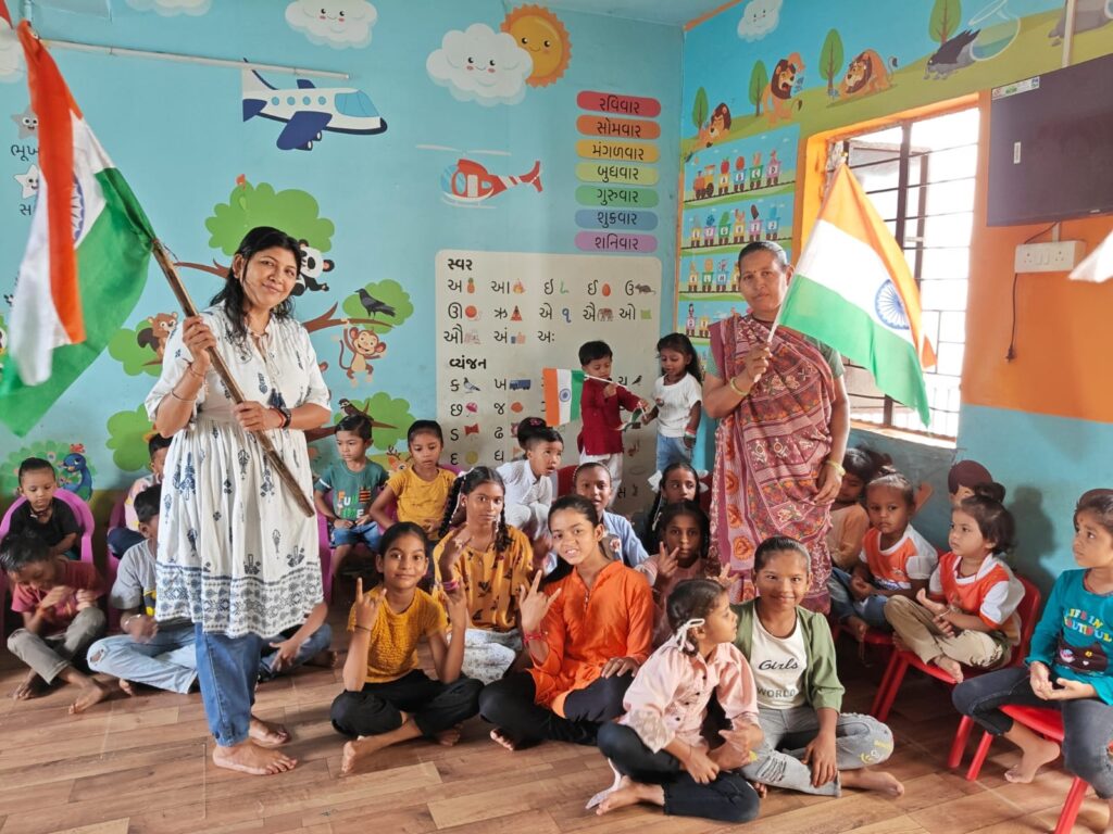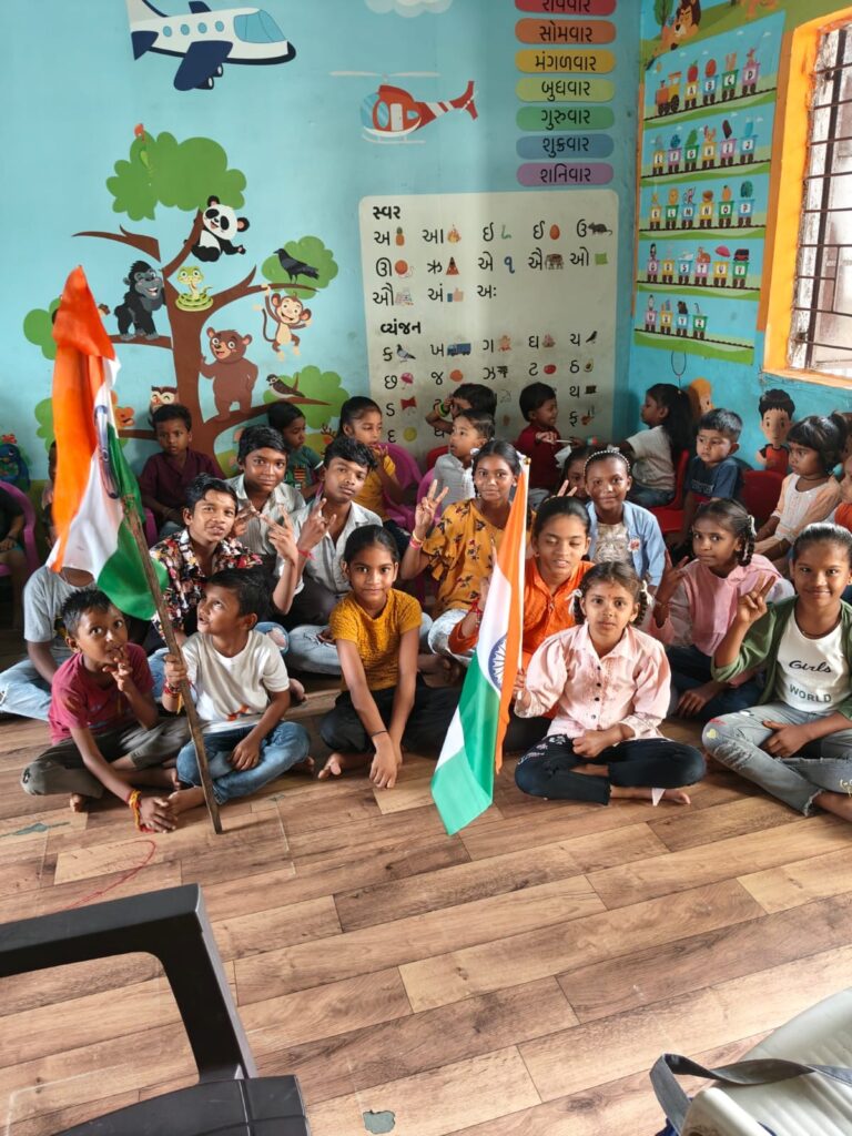 Raksha Charitable Trust distributing the games to the needy at Tarsali-Vadodara.