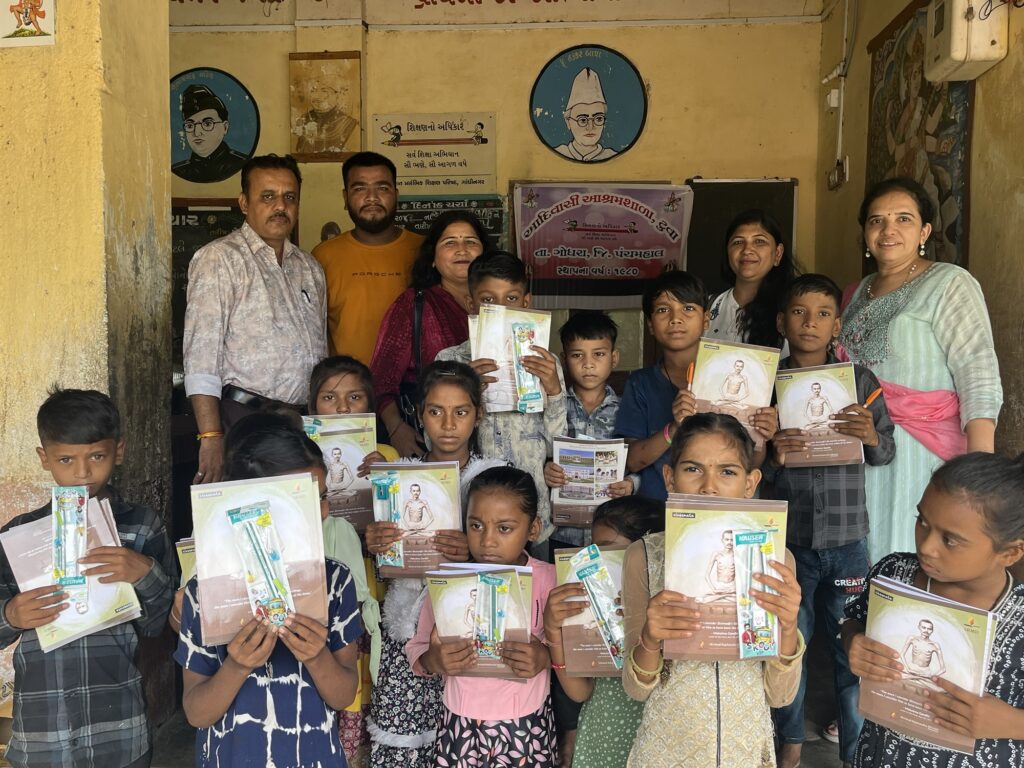 Panchmahal Godhara Adivashi asram sala notebook, and stationery distribution program